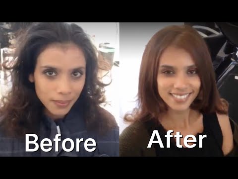 Hair makeover from black curly hair to light bruin style hair step by ...